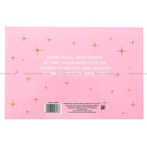 Шар (18''/46 см) Круг, С Рождением Малышки!, Розовый, 1 шт.