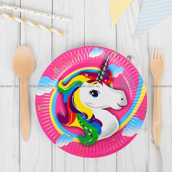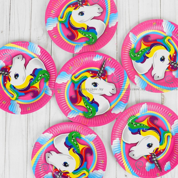 Тарелка бумажная "Единорог", d=18 см, набор 6 шт.