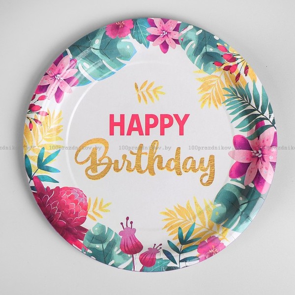 Тарелка бумажная Happy birthday, 18 см