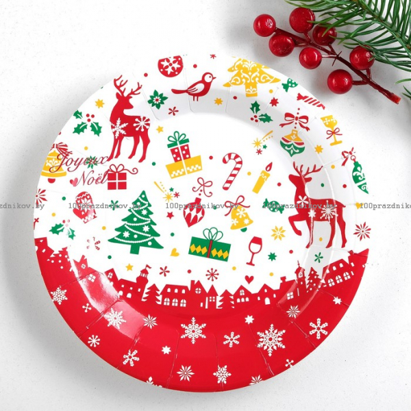 Тарелка бумажная "Новогодний город" набор 6 шт