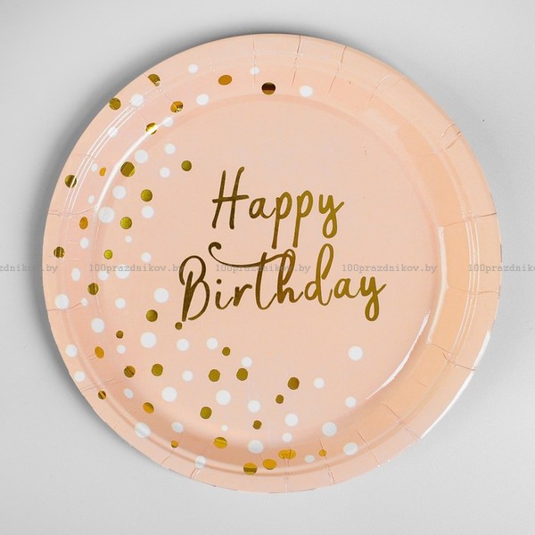 Тарелка бумажная «С днём рождения», 18 см, набор 6 шт., цвет персиковый