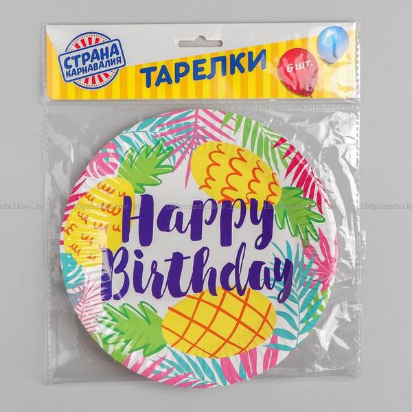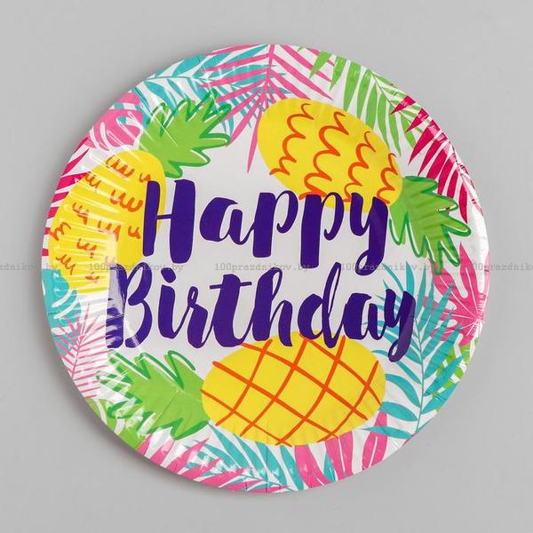 Тарелка бумажная «С Днём Рождения», ананасы, набор 6 шт.