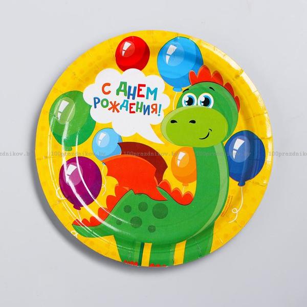 Тарелка бумажная «С Днём Рождения», дракон, 18 см
