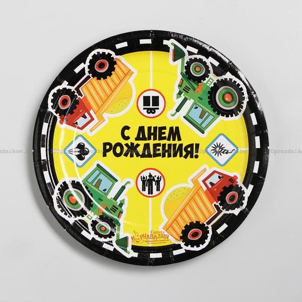 Тарелка бумажная «С Днём Рождения», грузовые авто, 18 см