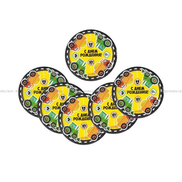 Тарелка бумажная «С Днём Рождения», грузовые авто, 18 см