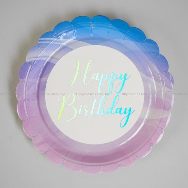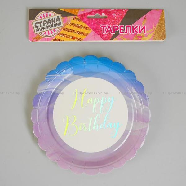 Тарелка бумажная «С Днём Рождения», набор 6 шт., цвет сиреневый