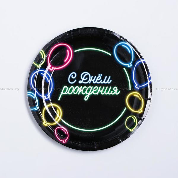 Тарелка бумажная «С днём рождения», неоновые шары, 18 см, 10 штук
