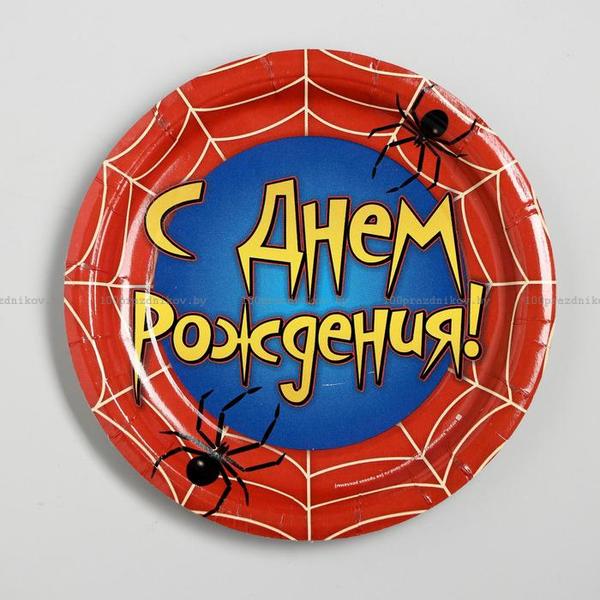 Тарелка бумажная «С днём рождения», паутина, 18 см