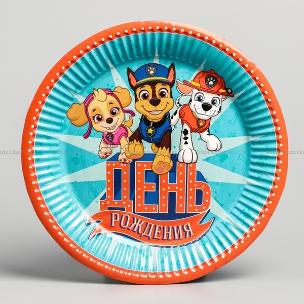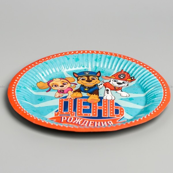 Тарелка бумажная "С Днем Рождения", Щенячий патруль, 18 см