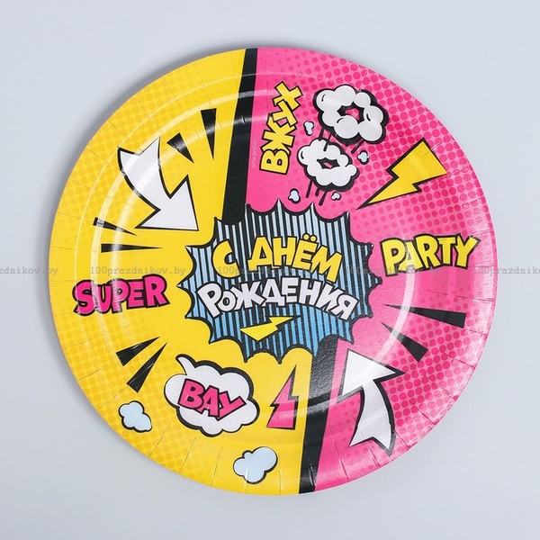 Тарелка бумажная «С днём рождения», super party, 18 см