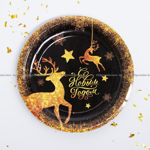 Тарелка бумажная «С Новым годом», золотые олени, 18 см, 10 шт