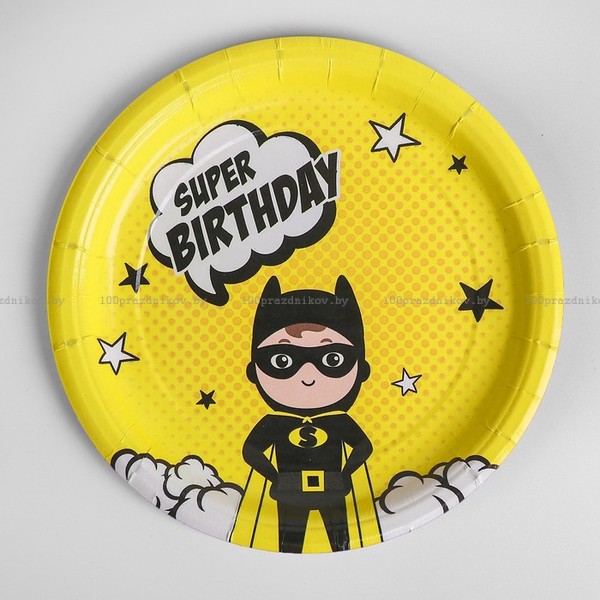 Тарелка бумажная Super birthday, 18 см