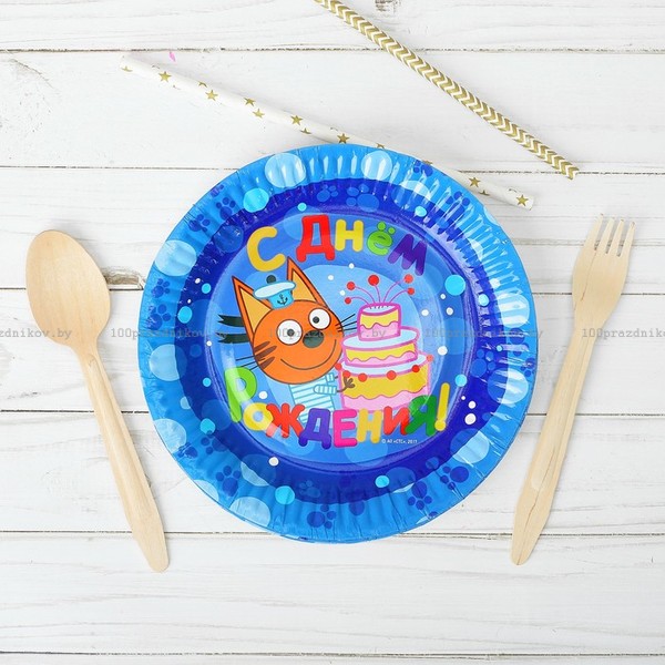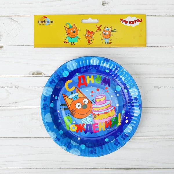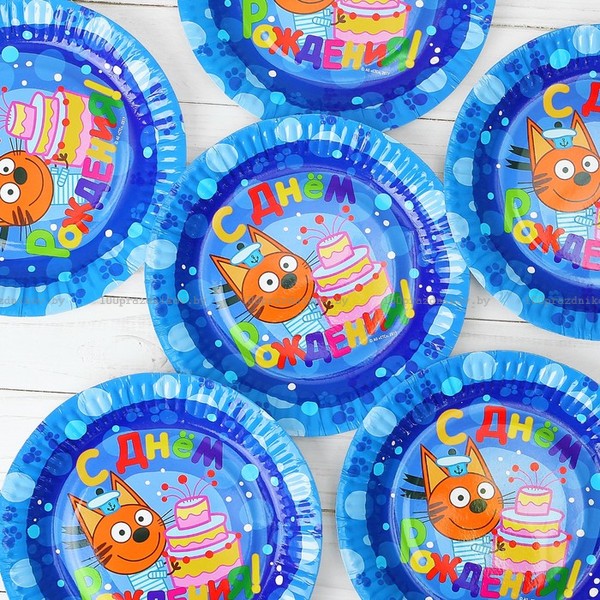 Тарелка бумажная «Три Кота», 6 шт., 17 см, цвет синий