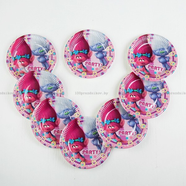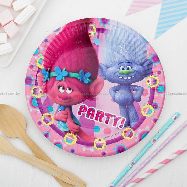 Тарелка бумажная «Тролли», 20 см, набор 8 шт.