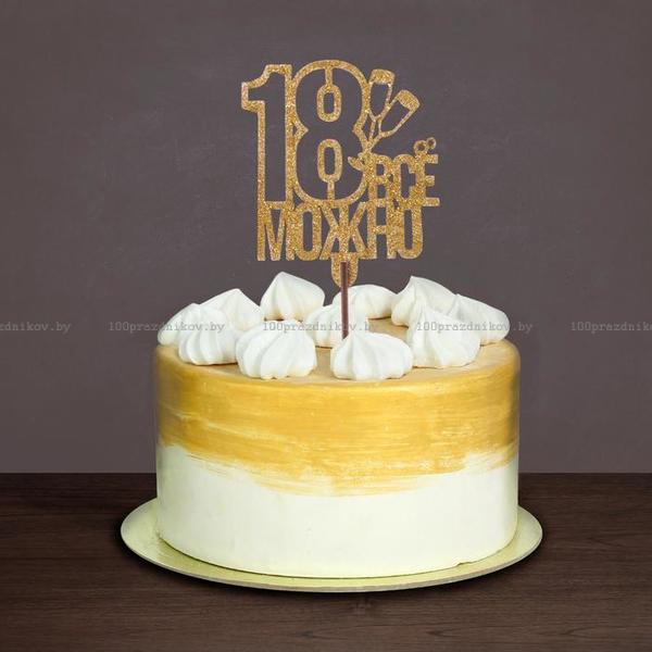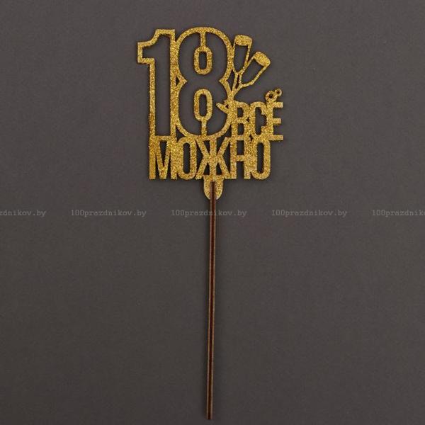 Топпер "С Днём Рождения, курсив", золотой Дарим Красиво