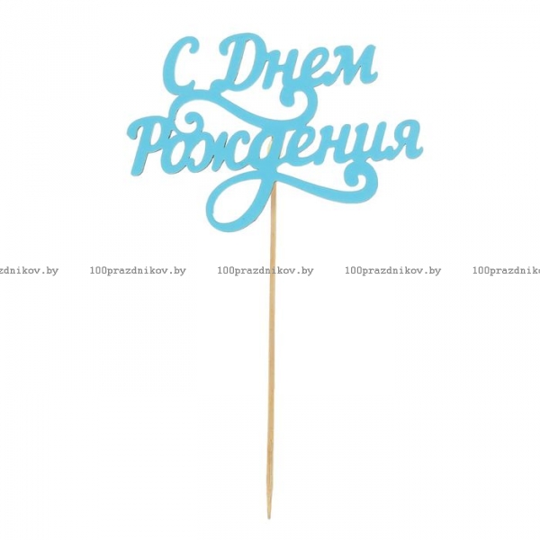 Топпер деревянный "С Днём Рождения", завитули
