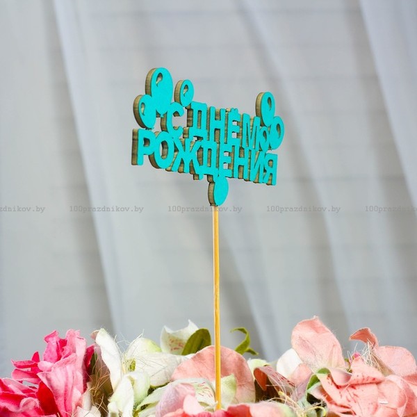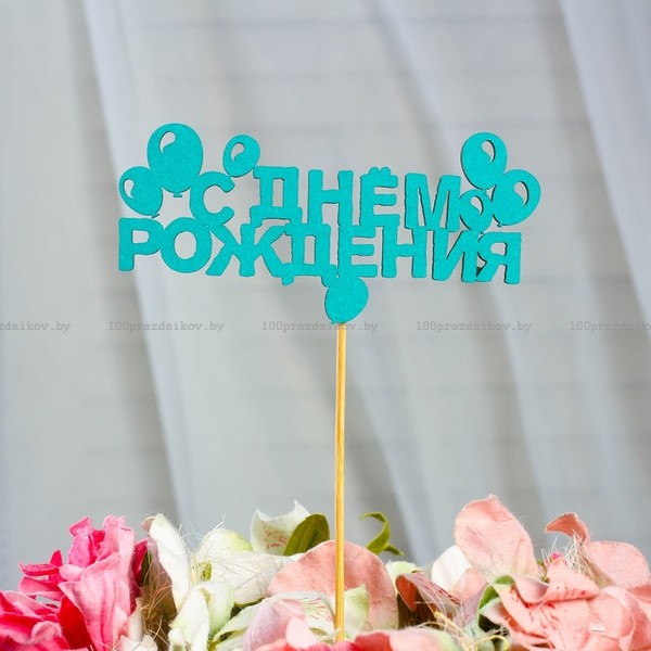 Топпер «С Днем Рождения», мятный, 12×4 см