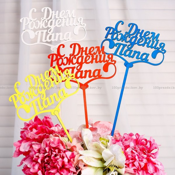 Топпер "С Днём Рождения, папа", цена за 1 шт, микс Дарим Красиво