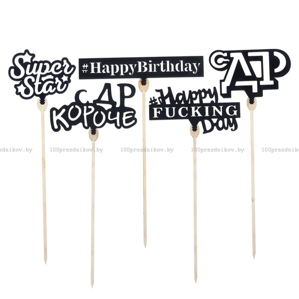 Топперы Ассорти «С ДР», чёрные, МИКС
