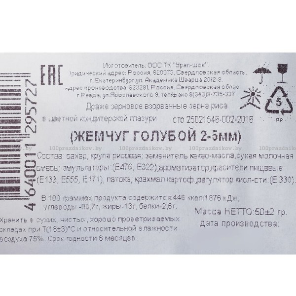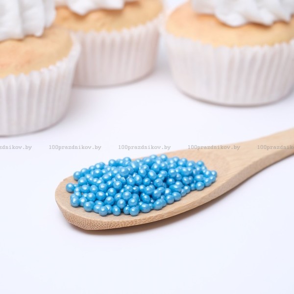 Воздушный рис в кондитерской глазури «Жемчуг», голубой, диаметр 2-5 мм, 50 г