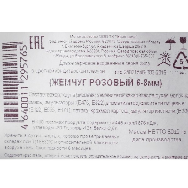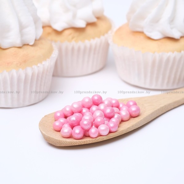 Воздушный рис в кондитерской глазури «Жемчуг», розовый, диаметр 6-8 мм, 50 г