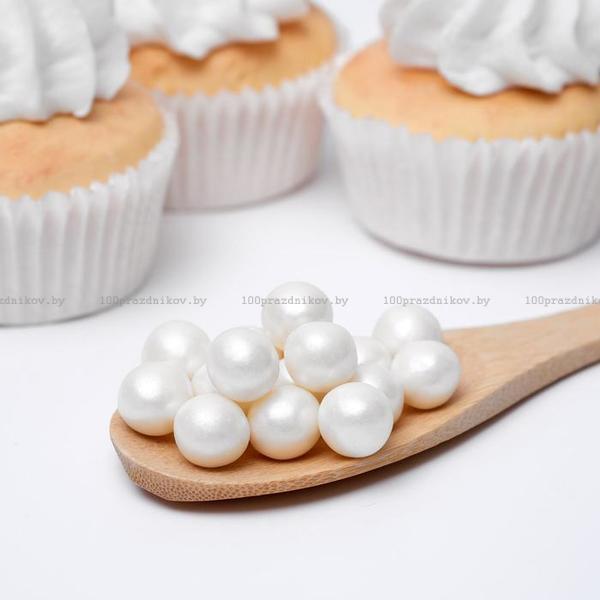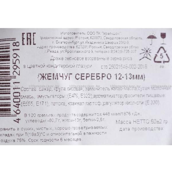 Воздушный рис в кондитерской глазури «Жемчуг», серебро, диаметр 12-13 мм, 50 г
